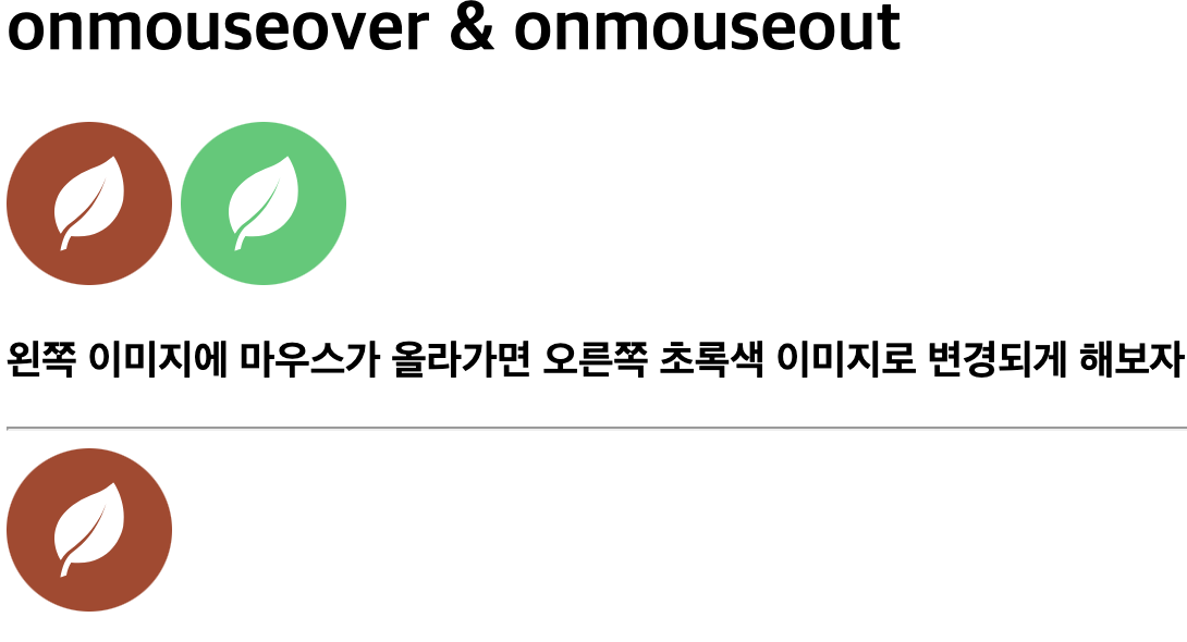 <h3>왼쪽 이미지에 마우스가 올라가면 오른쪽 초록색 이미지로 변경되게 해보자</h3>