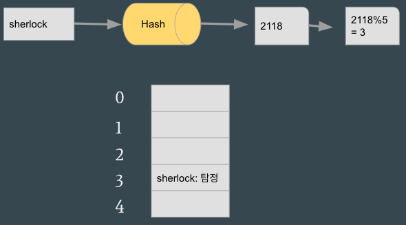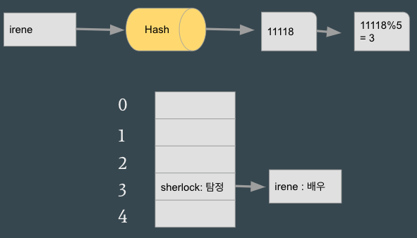 해시함수를 이용해 키, 벨류 형태의 데이터를 저장.